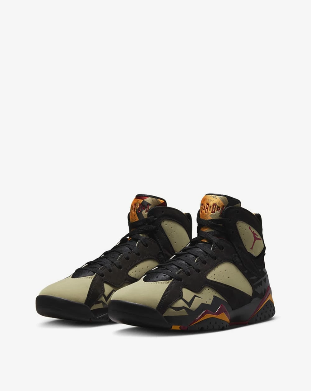 Celebrating the 30th anniversary of the 7, Jordan Brand releases an exclusive, celebratory sneaker inspired by several iterations of the previous model. This color way features a mix of black and green leather, concord accents, and Afrobeats-inspired detailing with tumbled-leather overlays. From style to performance, these retro sneakers are perfect for hooping outdoors or nights at the boardwalk.