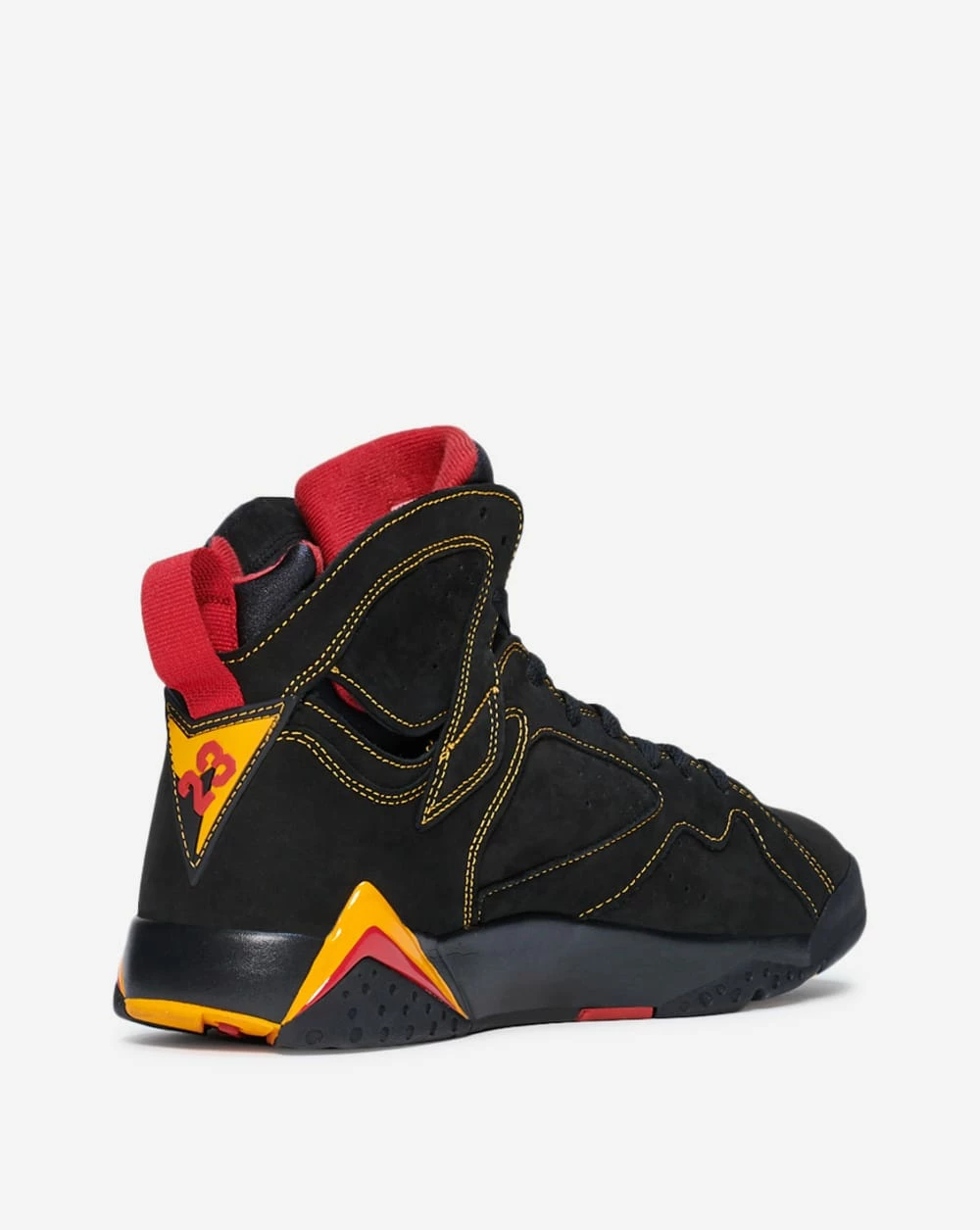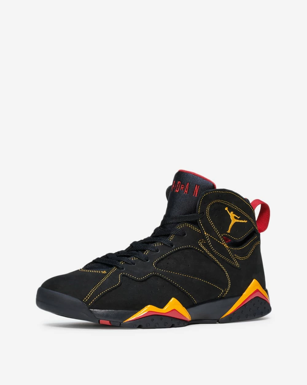 The Air Jordan 7 “Citrus” is back for the first time since 2006. This colorway features a black, citrus, and varsity red detail with tumbled-leather overlays.