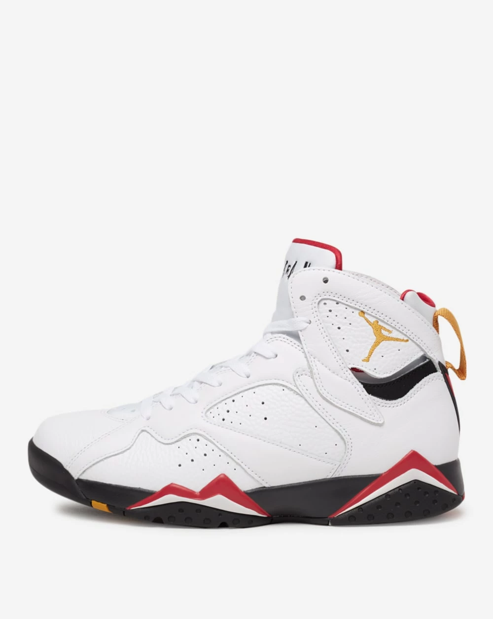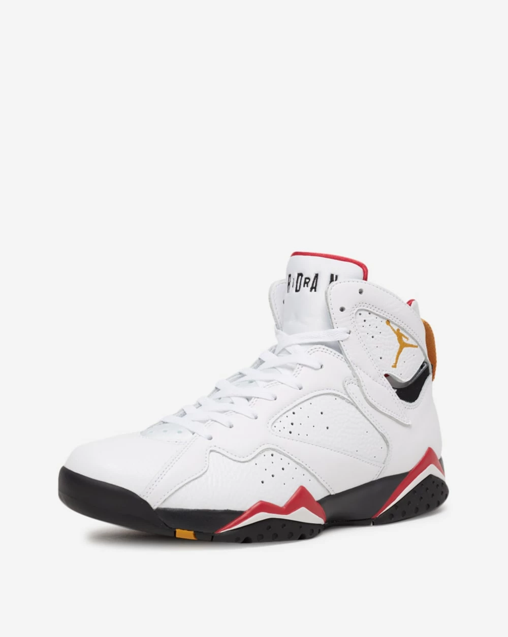 The Air Jordan 7 “Cardinal” is back for the first time since 2019. This colorway features a white, red and orange detail with tumbled-leather overlays.