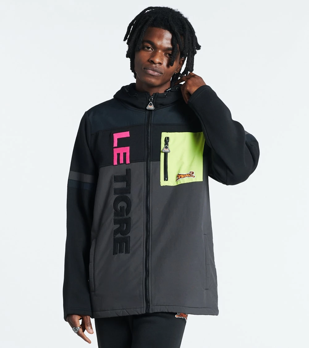 Hit the streets in style with this colorful track jacket from Le Tigre. Crafted from a heavyweight blend of cotton and polyester for comfort and warmth.