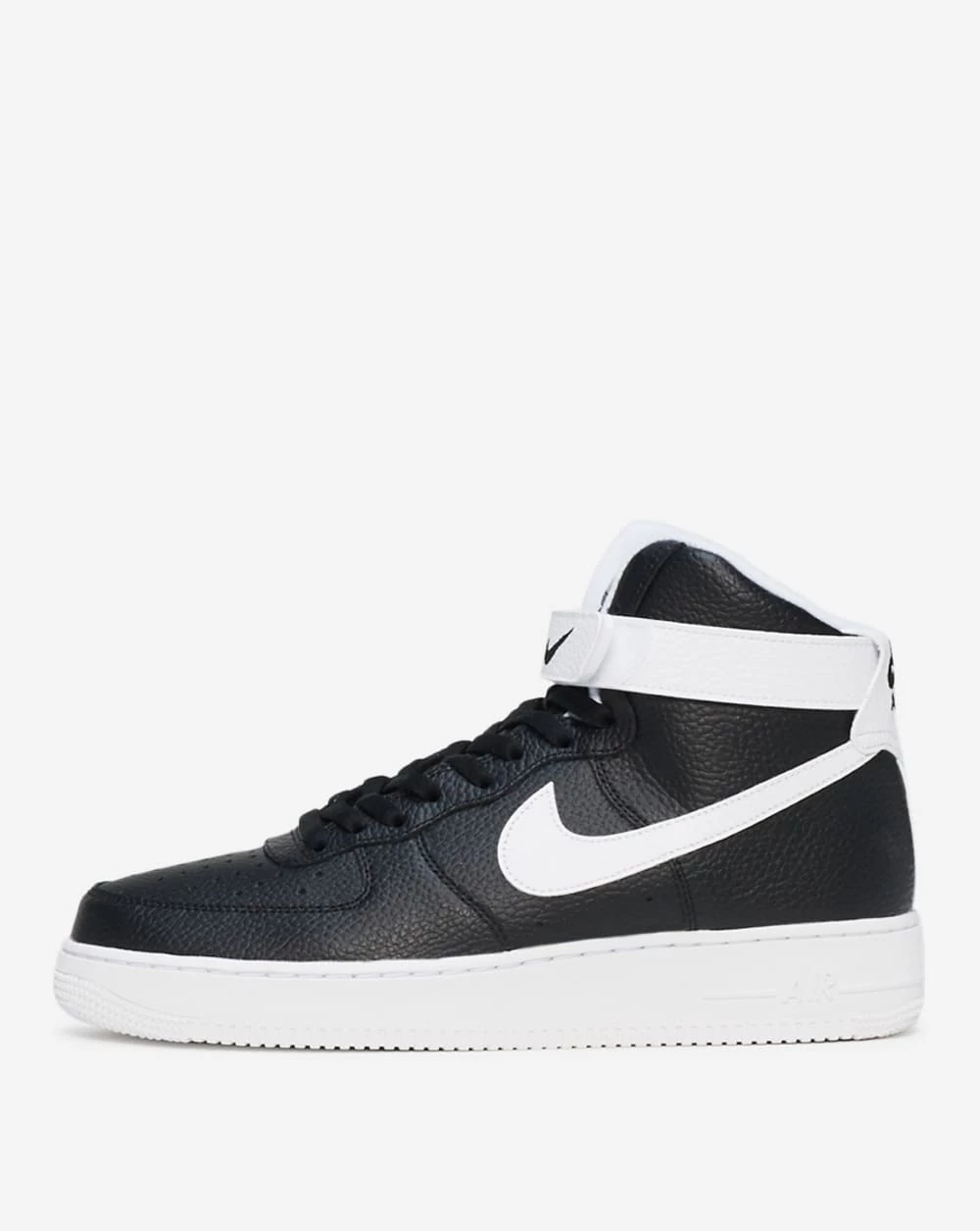 The Nike Air Force Hi sneaker features a premium-leather upper with perforations on the toebox for breathability. With an adjustable ankle strap and high collar, the Nike Air Force 1 ’07 sneaker provides snug support around the ankle. Featuring the iconic Nike Air midsole, these Nike high-top sneakers in white offer cushioned support for the foot and aid performance. They also have a durable rubber sole with a circular pivot pattern to facilitate sharp movements and provide optimum traction.