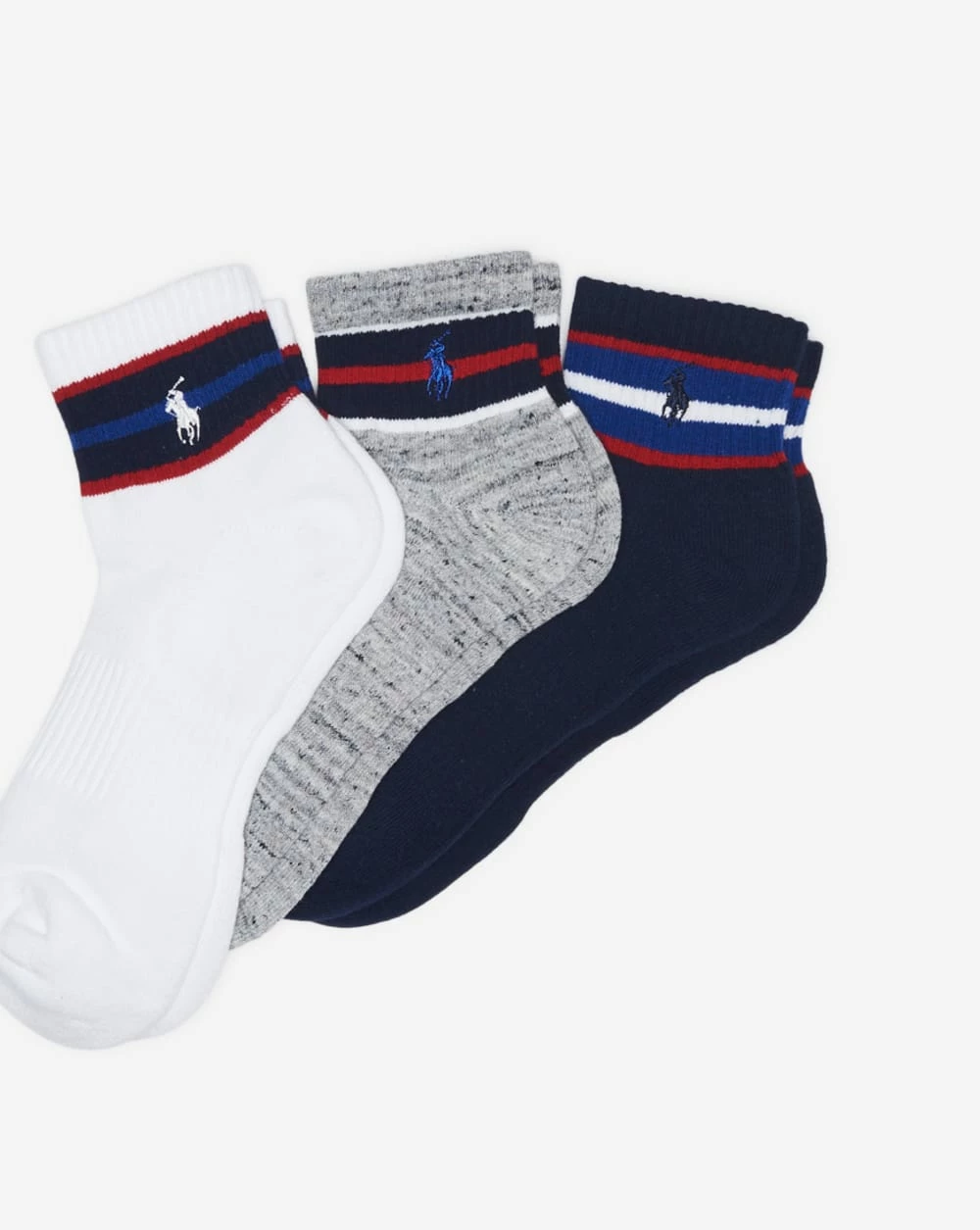 Complement your kicks with these cozy Americana Quarter Socks from Polo Ralph Lauren. These socks come in an assorted pack of three.