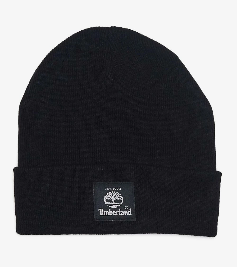 Keep your head toasty in the winter chill in this stylish beanie from Timberland, featuring a woven Timberland logo.
